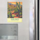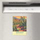 Dieser klassische Kühlschrankmagnet bietet einen landschaftlichen Blick im Retro-Stil auf den Saguaro Nationalpark im Landkreis Pima, Arizona. .