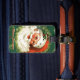 Der Retro Sankt-Gepäckanhänger ist eine große Weise, Feiertagsgeist Ihren Feiertagsreisen hinzuzufügen! Macht auch ein großes Geschenk! Der Retro Entwurf auf der Front kennzeichnet Sankt lächelndes Gesicht auf einem dunkelgrünen Hintergrund. Der Text liest, "frohe Weihnachten." Die Rückseite des Gepäckumbaus hat einen roten karierten Entwurf, mit dem Text Ihrer Wahl. Fertigen Sie den Text auf der Front und der Rückseite des Entwurfs besonders an, wie gewünscht. Der rote karierte Hintergrund auf der Rückseite des Gepäckumbaus ist auch optional--Sie können löschen, wenn sie gewünscht werden.