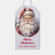 Geschenke Tags mit einer Vintagen Stildarstellung. Ein Portrait des Weihnachtsmannes mit seinem großen weißen Bart, der seine klassische rote Weihnachtsmannmütze trägt.