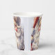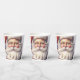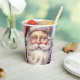 Papiertassen mit einer Vintagen Stildarstellung. Ein Portrait des Weihnachtsmannes mit seinem großen weißen Bart, der seine klassische rote Weihnachtsmannmütze trägt.