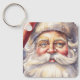 Schlüsselanhänger mit einer Vintagen Stilvorlage. Ein Portrait des Weihnachtsmannes mit seinem großen weißen Bart, der seine klassische rote Weihnachtsmannmütze trägt.