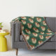 Ein Portrait des Weihnachtsmannes wird auf einem waldgrünen Hintergrund auf diesem herrlichen Holiday Muster Decke wiederholt. Die bunten blauen Augen des Weihnachtsmanns funkeln unter seinem traditionellen roten Hut und hinter seinem vollen weißen Bart. Kiefernnadeln umrahmen das Portrait. Schöne und nützliche für die Feriensaison!