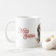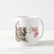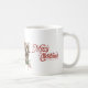 Diese stilvolle und stilvolle Tasse bietet eine einzigartige Aquarellbild mit dem Weihnachtsmann, der Pferde mit roten Heiligenbeeren reitet, sowie eine Weihnachtstypografie, die "Frohe Weihnachten" auf weißem Hintergrund sagt.