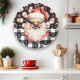 Retro Santa Claus Schwarz-Weiß-Karierte Weihnachte Große Wanduhr