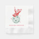Retro Santa Disco Ball Christmas Party Napkins. Bring some playful sparkle to your holiday gatherings with these personalized Christmas napkins featuring a retro Santa swinging from a disco ball. The bold red and green design adds a fun, nostalgic vibe that’s perfect for cocktail parties or festive dinners with friends.