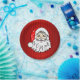 Vintage Santa Illustration auf Retro-Rot Stripey Hintergrund.