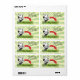 Großer Retro Santa Claus mit einem modernen grünen und blassgelben Hintergrund mit Platz für Ihre eigenen "Santa Says" und Ihren Namen und Ihre Adresse, oder Ihre eigene Weihnachtsbotschaft. Ideal für Weihnachtsgeschenke, Geschenke, Aufkleber, Porto etc. Handgezeichnete Abbildung von McBooboo