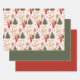 Retro Santa Pink, rot und grüne Weihnachtswrapping Sheets Paper Sheet Sets von 3