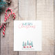 Ein Retro Weihnachtsgeschichten Notepad Illustration einer Winterweihnachtsszene mit dem Weihnachtsfahrer einen Schlitten, der von seinen Rennern in einer Waldnachtszene von einem Stern angezogen wird. Schwarz, Rot und Türkis. Der Familienname kann personalisiert werden