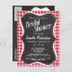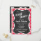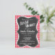 Retro Scarlet Red Gingham; Chalkboard-Look Einladungspostkarte