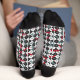 Diese Socken haben ein Retro-Schachbrettmuster mit Schachfiguren und einem atomaren Symbolschachbrett. Ein großartiges Schachmuster, perfekt für jeden modernen Liebhaber oder Schachfreund aus der Mitte des Jahrhunderts. Man kann das Schachmuster auf diesen Socken größer oder kleiner machen.