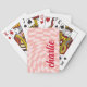 Spielkarten mit einem hellrot-rosa, verdrillten Schachbrettmuster und Ihrem Namen in einem roten Retro-Schriftart.