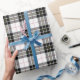 Retro Schwarz-weiß Weihnachten Neujahr Tartan Kari Geschenkpapier