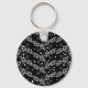 Retro Schwarz-weißer floraler Schlüsselanhänger
