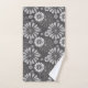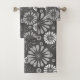 Retro Schwarz-weißes Gänseblümchen Muster-Tuch-Set, grauer Hintergrund mit weißem und grauem Gänseblümchenmuster. Ein perfekter Akzent für Ihr Bad oder Wellness-Center.