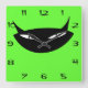 Retro moderne schwarze Katzengesichtsuhr im Stil des 20. Jahrhunderts mit Zahlen im coolen Schriftart. Diese coole Katze sieht ein wenig verspielt und ein wenig schelmisch aus. Auf Retro-Linde grün angezeigt, aber Sie können die Hintergrundfarbe ändern, wenn Sie möchten.