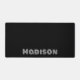 Set Ihres Schreibtisches und Büroraums mit dieser Retro Black and White Personalisiert Desk Mat. Das trendige Design besteht aus weißen, mit Retro-Linien versehenen Buchstaben in der unteren Mitte. Hintergrund ist anpassbar schwarz. KLICKEN SIE AUF VORLAGENOPTION PERSONALISIEREN, UND GEBEN SIE DEN NAMEN ODER IHRE BENUTZERWÖRTER EIN.