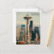 Mit dieser Vintagen Aquarell-Postkarte von Seattles berühmter Skyline können Sie die Zuhause mit dem Reiz des Nordwestens des Pazifiks verbinden. Dieses Vintage-Reisememento zeigt perfekt das Wesen von Seattle, von der Space Needle bis hin zur architektonischen Eleganz der Stadt. Ideal für Reisende, Sammler oder als ein umsichtiges Memento, das Kunst und Nostalgie für Washington verbindet.