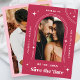 Überraschen Sie Ihre Lieben mit dieser modernen, stilvollen Save the Date-Karte, mit viva magenta Hintergrund, arch, retro Drehbuch, 2 Fotos und benutzerdefiniertem Text Ihrer Wahl. Fügen Sie einfach Ihre eigenen Daten hinzu, indem Sie auf die Option "Personalisieren" klicken.