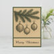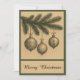 Versenden Sie zeitlose Urlaubswünsche mit dieser eleganten Weihnachtskarte mit minimalistischem Gold und grünem Design. Die Vintage Illustration eines Weihnachtsbaumzweiges mit Ziergegenständen schafft einen rustikalen und dennoch schicken Look. Ideal für diejenigen, die altmodischen Charme, botanische Details und raffinierte Typografie Liebe haben. Feiern Sie eine fröhliche und helle Saison mit einer festlichen Karte, die Einfachheit und Eleganz in einem einzigartigen Design kombiniert.