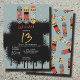 Retro Skateboard Blue Cool Spray Paint Birthday Einladung