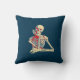 Glücklich lächelndes Skelett mit der göttlichen Hand, die auf seinem Kinn ruht, in Retro-Farben gemacht.