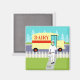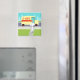Das Retro Small Town Milkman Magnet ist für Sie das Richtige, wenn Sie sich nach einem modernen Design der Mitte des Jahrhunderts sehnen. Das minimalistische Design der 60er Jahre besticht durch einen engagierten Milchmann, der seine morgendlichen Runden macht. Der blonde Mann trägt milchig weiße Hosen, Shirt und Hut mit schwarzer Bogen-Krawatte, Gürtel und Schuhe. Dieser Kalzium- und Vitamin-D-Lieferant geht auf einen Bürgersteig und trägt den wöchentlichen Vorrat einer Familie an gesunder, frischer Milch in Glasflaschen. Die Morgenzeitung ist noch auf dem Bürgersteig. Mach dir keine Sorgen. Nur gute Neuigkeiten sind in dieser Stadt erlaubt! Der Bürgersteig ist von einem grünen Rasen umgeben, der nur in kleinen Städten und Vorstädten zu finden ist. Es gibt auch einen weißen Zaun. Auf der Straße sehen wir die liebliche Fahrt des Milchmanns! Es ist ein cremegelber Milchwagen mit einem roten Streifen auf der Seite und einem roten Buchstaben, der sagt: "MÄDCHEN". Auf der gegenüberliegenden Straßenseite sehen wir einen Wasserhimmel und die hellblauen Silhouetten von Zedern. Dieser kitschige Cartoon sieht aus wie eine Szene aus einer alten TV-Sitcom. Holen Sie sich den gelben Kuchen mit Schokolade-Zuckerguss an - der offizielle Kuchen aller Hausfrauen und ihrer glücklichen Familien! Gebäude starke Knochen nie so gut gekostet!