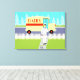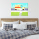Das Retro Small Town Milkman Stretched Canvas Print ist für Sie da, wenn Sie nach einem modernen Design für Mitte des Jahrhunderts suchen! Das minimalistische Design der 60er Jahre besticht durch einen engagierten Milchmann, der seine morgendlichen Runden macht. Der blonde Mann trägt milchig weiße Hosen, Shirt und Hut mit schwarzer Bogen-Krawatte, Gürtel und Schuhe. Dieser Kalzium- und Vitamin-D-Lieferant geht auf einen Bürgersteig und trägt den wöchentlichen Vorrat einer Familie an gesunder, frischer Milch in Glasflaschen. Die Morgenzeitung ist noch auf dem Bürgersteig. Mach dir keine Sorgen. Nur gute Neuigkeiten sind in dieser Stadt erlaubt! Der Bürgersteig ist von einem grünen Rasen umgeben, der nur in kleinen Städten und Vorstädten zu finden ist. Es gibt auch einen weißen Zaun. Auf der Straße sehen wir die liebliche Fahrt des Milchmanns! Es ist ein cremegelber Milchwagen mit einem roten Streifen auf der Seite und einem roten Buchstaben, der sagt: "MÄDCHEN". Auf der gegenüberliegenden Straßenseite sehen wir einen Wasserhimmel und die hellblauen Silhouetten von Zedern. Dieser kitschige Cartoon sieht aus wie eine Szene aus einer alten TV-Sitcom. Holen Sie sich den gelben Kuchen mit Schokolade-Zuckerguss an - der offizielle Kuchen aller Hausfrauen und ihrer glücklichen Familien! Gebäude starke Knochen nie so gut gekostet!