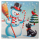 Retro Snowman, Niedlicher Hund, roter Kardinal und Fliese