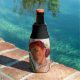 Retro roter Kopf mit einer Flasche Soda mit lustigem Slogan.
