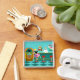 Servieren Sie etwas Besonderes mit diesem Retro Soda Fountain Schlüsselanhänger. Die minimalistische Kunst, der Cartoon zeichnend Design kennzeichnet das Interieur des coolsten Ortes in der Stadt. Es ist ein Sodabrunnen aus den 50er Jahren, ganz in der kitschigen Pracht! Vor dem Hintergrund einer Wassermauer sehen wir Plakate, auf denen die Spezialitäten des Hauses gepriesen werden. Ein Poster zeigt einen Hamburger und eine Flasche Pop zum Schnäppchenpreis von 15 Cent. Das andere Poster zeigt zwei Bruchstücke Eis in einer Zuckerdose für nur 5 Cent. Bei Preisen wie diesen muss es schwierig sein, Ihre Taille zu sehen! Ein kompetenter Soda-Jerk ist die Besetzung der aquamarinen Theke mit gelben Akzenten. Der junge Mann mit der ausgeprägten Arbeitsethik hält eine Eistüte mit einem Single aus Zitronengelb-Eis - obwohl es, um fair zu sein, Ananas sein könnte! Die geputzte Platte trägt ein unberührtes, weißes Shirt mit einer schwarzen, bogenförmigen Krawatte und einem weißen Hut mit roten Akzenten. Auf der anderen Seite der Theke sehen wir drei rote und chrome Bar. Auf einem der Hocker sitzt ein blonder Teenybopper, dessen Mund sicherlich gießt. Es ist unklar, ob ihr Mund über die Eiskegel gießt, auf der sie sich zubewegt, oder den fleißigen jungen Mann, der sie serviert. Sie trägt einen rosa Poodle-Rock und einen schwarzen Teller mit passender Form. Ihre gelben Schlösser werden in einem klassischen Pferdeschwanz zurückgezogen. Neben dieser Süsse eines Kunden befindet sich eine farbenfrohe, klassische Jukebox mit braunem Holzkorn, Holztäfelungen und farbenfrohen Neonleuchten. Besser als das, es ist sicher, alle besten Rock-and-Roll-Hits der Zeit zu bieten! Der Boden dieser modernen Eisdiele aus der Mitte des Jahrhunderts ist ein Aqua-und aquamarines Schachbrettmuster, das nur nach jemandem schreit, der die neuesten Tanzbewegungen ausprobiert.