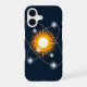 A clean retro cosmic artwork showing stylized stars circling a glowing sun, crafted with bold vintage tones and a textured finish.