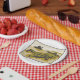 Ein Retro-Design eines Soldaten und eines Panzers. Dieses Design wirkt auf diese Paper-Teller sehr effektiv