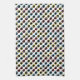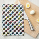 Dieses Küchentuch weist ein buntes Muster auf, das aus Retro-1970er Jahren inspirierte Sonnenbrillen in Rot-, Blau- und Gelbtönen mit schwarzen Akzenten besteht.