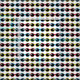 Ein lebendiges Muster aus Retro-1970er Jahren inspirierte Sonnenbrillen in den Primärfarben Rot, Blau und Gelb mit schwarzen Akzenten.