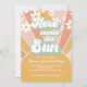 Retro inspiriert Sonnenschein zum ersten Geburtstag Einladung mit 70er-Stil Gängen und bohligen Schriftart und Farben.