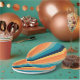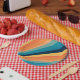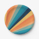 geometrische Muster-Abbildung im Retrostil mit gelben, orangen, blauen und türkisfarbenen Streifen