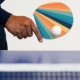 geometrische Muster-Abbildung im Retrostil mit gelben, orangen, blauen und türkisfarbenen Streifen