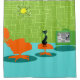 Es heißt, dass Hunde Besitzer haben und Katzen Mitarbeiter haben. Die Felin auf diesem Retro Space Age Kitty Shower Vorhang konnte nicht mehr zustimmen! Das minimalistische Design der 1960er Jahre besticht durch eine elegante, schwarze Katze in einem modernen Wohnzimmer, das Mitte des Jahrhunderts errichtet wurde. Der elegante Raum ist mit einer grünen Steinwand versehen. Der Teppichboden ist ein Aqua mit aquamarinen Schatten. Die Einrichtung des Zimmers umfasst eine gelbe, helle Figur mit Sputnik, einen orangefarbenen Loungestuhl mit passendem Fußbodenbelag und einen grünen Fernseher mit Kaninchenohren. Die glückliche schwarze Katze kann man auf dem Fußhocker vor dem Fernseher sehen. Seine Lieblingsshow ist auf! Auf dem Fernsehbildschirm sehen wir eine schwarz-weiße, klassische Fernsehfamilie, die alle Probleme des Lebens in einer halben Stunde Show löst. Dieses Design ist korrekt, wenn wir es selbst sagen.