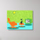 Es heißt, dass Hunde Besitzer haben und Katzen Mitarbeiter haben. Die Feline auf diesem Retro Space Age Kitty Stretched Canvas Print konnte nicht mehr zustimmen! Das minimalistische Design der 60er Jahre besticht durch eine elegante, schwarze Katze in einem modernen Wohnzimmer aus der Mitte des Jahrhunderts. Das elegante Zimmer besticht durch eine grüne Steinmauer. Der Teppichboden ist aus Aqua mit aquamarinen Schatten. Die Einrichtung der Zimmer umfasst eine gelbe, sputnikfarbene, helle Figur, einen orangefarbenen Loungestuhl mit passendem Stuhl und einen grünen Fernseher mit Kaninchenohren. Die glückliche schwarze Katze kann man auf dem Fußhocker vor dem Fernseher sehen. Seine Lieblingsshow ist auf! Auf dem Fernsehbildschirm sehen wir eine schwarz-weiße, klassische Fernsehfamilie, die alle Probleme des Lebens in einer halben Stunde Show löst. Dieses Design ist perfekt, wenn wir es selbst sagen.