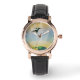 Uhr, Klassische Damenuhr mit schwarzen Lederarmband