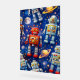 Description brighten up your walls with a blast from the past spectacular retro robot galaxy fine art poster is a high definition tribute to the golden age of sci-fi featuring an incredibly charming squad of vintage style. 10 robots floating through a deep blue universe. This design is packed with whimsical detail from glowing ringed planets and craters on the moon thousands of twinkling stars whether you're decorating a nursery a kids bedroom or adding a playful midcentury vibe to your office. This premium print is a total standout. It's the perfect way to bring a sense of adventure, nostalgia and intergalactic fun