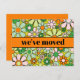 Retro Frühjahr florale neue Adresse / Wir haben die Karte verschoben. Niedliche, federnde, fröhliche Blume mit einer lustigen Vintagen Ästhetik und einem Ambiente aus den 1970er Jahren in hübschen, hellen Pastellfarben mit Orange. Text kann angepasst und personalisiert werden. Von Kierkegaard Design Studio.