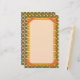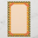 Bright orange striped faux washi tape adorns the corners of this colorful multi pattern design with hand drawn floral and striped patterns in orange, yellow, cream and green, bordering a spacious cream writing paper.