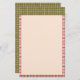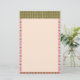 A colorful, hand drawn tablet styled stationery paper featuring a mix of playful retro pink and green patterns bordering a spacious cream writing space.