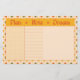 A bright and sunny planner stationery paper with grid, lined and blank spaces bordered by a hand drawn yellow, green, and orange floral grid pattern with the words "Plan Note Dream" as a header in a trendy orange retro font.