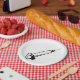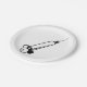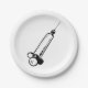 Eine Retro-Abbildung einer Spritze. Dieses Design wirkt auf diese Paper-Teller sehr effektiv