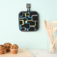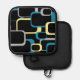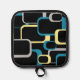 Sind Sie ein Fan von Retro-inspirierten Mustern? Dieser Pothalter hat ein quadratisches Retro-Muster, das mit grauen, blauen und gelben Mustern auf schwarzem Hintergrund erstellt wurde.