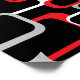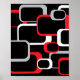 Ein cooles, inspiriertes Retro-Muster mit roten, weißen und grauen Quadraten auf schwarzem Hintergrund