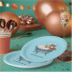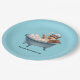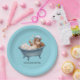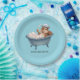 Retro Squirrel Baby Shower Paper Plate. The cartoon squirrel, sporting a shower cap, lounged in a retro tub, surrounded by bubbles, pretending to be a celebrity on vacation.